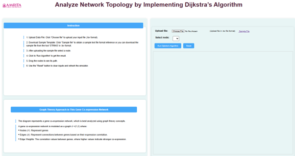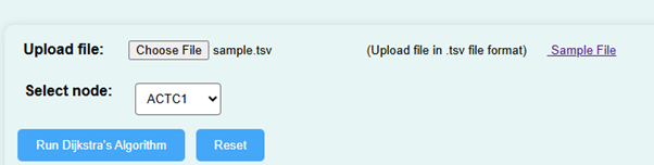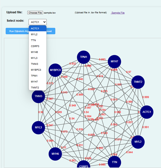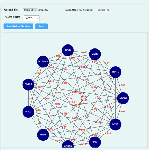 - Click on the “Run Dijkstra’s Algorithm”. This will analyse the network topology of gene interactions.
