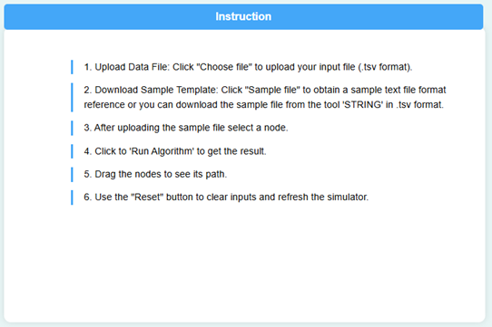 To run the analysis, users must upload a gene interaction dataset in . tsv (tab-separated values) format. The file should include the following columns: