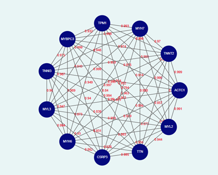 In a gene interaction network, each node represents a gene (Fig.2). These genes can be classified based on their function, such as transcription factors, signalling molecules, or metabolic enzymes. For example, in a cancer-related gene network, nodes might include genes such as TP53 (a tumour suppressor), BRCA1, MYC, and BAX, MDM2(which regulates TP53). Nodes help in visualizing how different genes are functionally linked within a biological system.