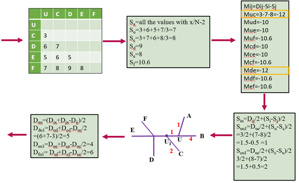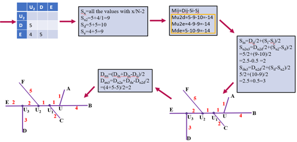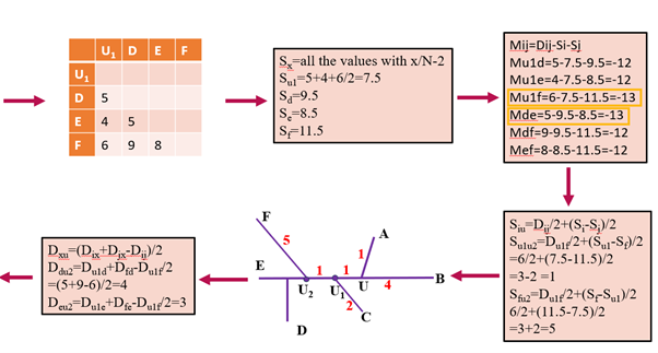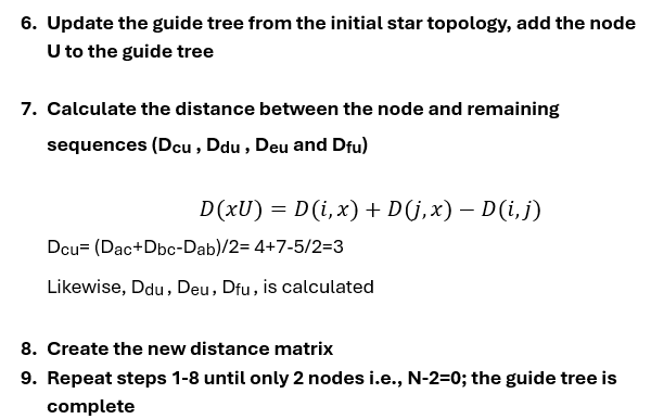 Figure 2: Example being calculated iteratively. Each color represents a step towards generating a phylogenetic tree