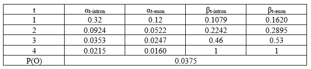 α1-exon = π(exon) × b(A-exon) = 0.2 × 0.6= 0.12