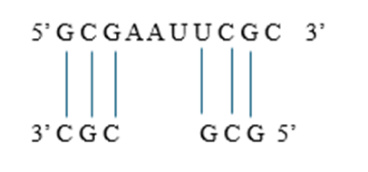 Predicted Structure for 5′−GCGAAUUCGC−3′ is a stem-loop (hairpin)